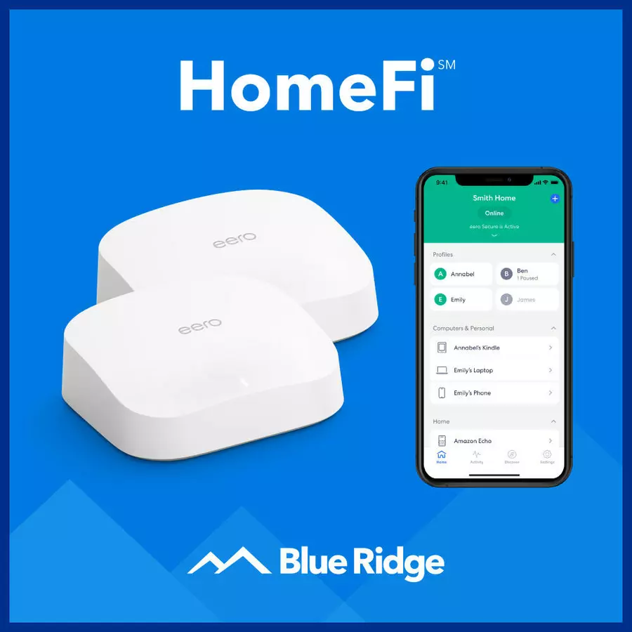 Blue Ridge provides reliable and affordable high-speed internet, advanced WiFi, streaming and TV, security, and phone services to homes and businesses throughout Northeastern Pennsylvania and parts of New York. Products available include speeds up to 2 Gig, Unlimited Data, HomeFi whole-home WiFi by eero, eero Plus, Smart Home Security, Blue Ridge Stream, Blue Ridge Mobile, Premium Streaming Services (HBO Max and EPIX), Local Live TV, HD Channels, 4K Streaming, Cloud DVR, Premium TV, Music Channels, Spanish Channels, Unlimited Local and Long Distance Calling, Over 10 included Calling Features, Online Account Management, and much more.